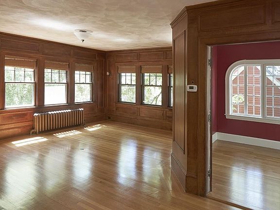 Jason Heights. Located on a beautiful tree-lined street within a stone's throw of Menotomy Rocks Park, this 1923 Colonial-style residence offers period details and exquisite millwork. The interior of the house is accented with French doors, wainscoting and natural woodwork. The main level has a gracious living room with a fireplace and sitting area; a cozy den with arched windows; an eat-in kitchen; a powder room and a dining room with a built in china cabinet and access to an inviting three-season porch. The porch has a sliding glass door leading to a large deck and rear yard. The second level offers four bedrooms and a full bathroom. Additional features include high ceilings, generously-sized rooms, hardwood floors, mature plantings, underground sprinklers and garage parking. This property offers the next owner an exciting opportunity to create an exceptional residence.