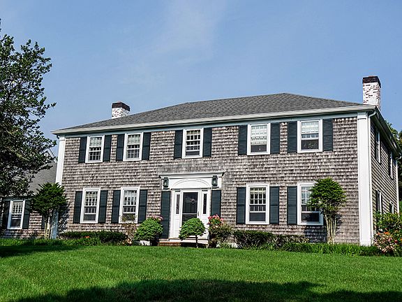 Jog to Nauset Beach from this stunning 4 bedroom 3 1/2 bath Colonial in a park like setting with enchanting picturesque gardens! All rooms are spacious & beautifully appointed with high ceilings & abundant natural light! The family room with a fireplace has a fabulous southern yellow pine ceiling & beams. There is a delightful eat in kitchen, powder room with laundry, lovely formal dining room, pretty living room with a fireplace wall, & an office or guest bedroom with a full bathroom. Second level private master bedroom with dressing room & an en suite master bathroom, also 2 additional guest bedrooms & a full bathroom. Wonderful privacy & perfectly situated within easy access to East Orleans Village, Pochet Inlet & the Ocean!
