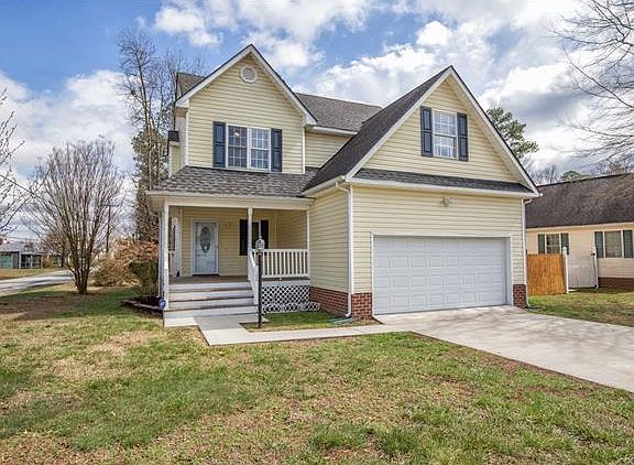 Welcome to this nicely maintained 2 story, 4 bedroom, 2.5 bath transitional home! An inviting front porch, large rooms, a flowing and open floor are just a few of its features. This home offers so much for so little, with the first level offering a generous sized family room with laminate flooring, and kitchen with convenient dining area. Upstairs you will find the master bedroom with private master bath, and a walk in closet, and 3 additional bedrooms! Majority of the rooms have been freshly painted. Exterior is maintenance free, has paved driveway, and includes a 2 car finished attached garage. You will enjoy countless outdoor hours sitting on your deck, entertaining family and friends, or peacefully watching your children or pets, in the fully fenced in back yard. And the home is conveniently located to all major interstates, schools, medical facilities, downtown Richmond, and the Fort Lee area! Just bring the family and the furniture!