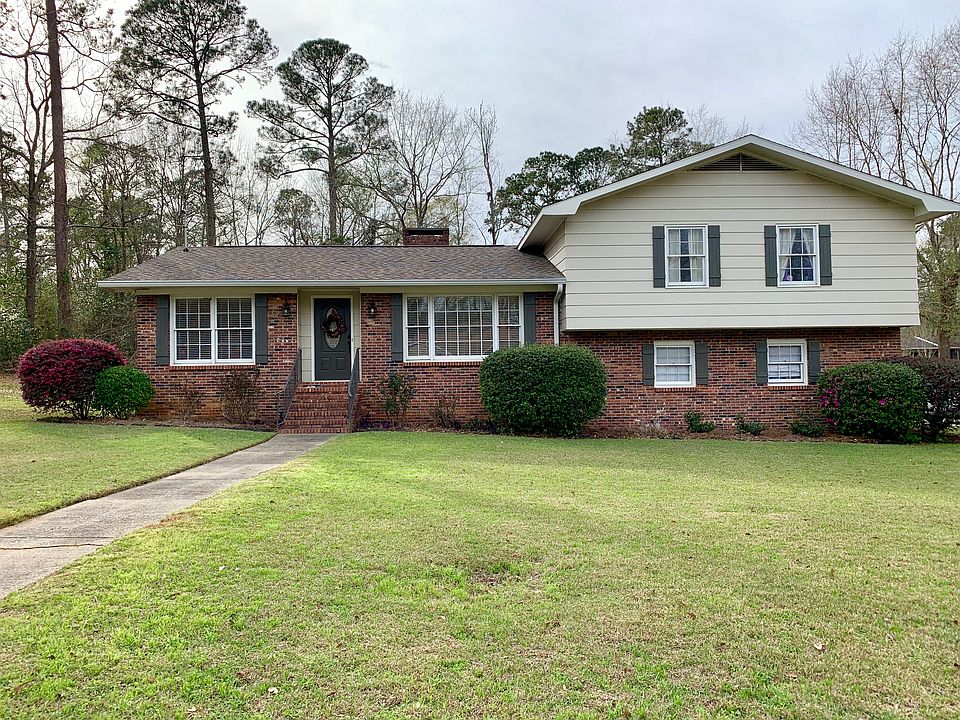 Charming brick home conveniently located on large corner lot in Brentwood Subdivision! This 3BR/2BA home features eat-in kitchen and separate dining room, family room with brick fireplace, living room and spacious bedrooms all situated on a large lot with covered back porch and fenced back yard. Recent updates include beautiful granite countertops & tile backsplash in kitchen, tile floors in bathrooms, garage doors & more. Roof, A/C Unit, flooring, and exterior paint have all updated within 7yrs