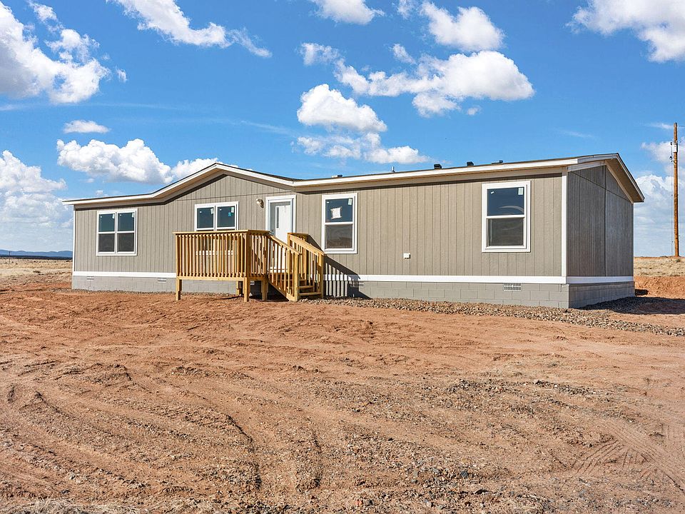 Discover this brand-new, budget-friendly Clayton Smart Energy home! Situated on 3 acres with a permanent FHA inspected foundation and painted cinder block skirting. Inside, you'll find 3 bedrooms, 2 bathrooms, and 2 spacious living areas within an open floor plan. The large kitchen boasts a center island, Energy Star appliances, and a smart thermostat for efficiency. Additional features include refrigerated air conditioning, vaulted ceilings with recessed lighting, and durable smart panel siding--plus, no carpet! The backyard is a blank canvas, ready for your vision of taking in the breathtaking views of the Manzano Mountains while embracing peaceful country living. This home qualifies for VA, FHA, USDA & Conventional loans and is move-in-ready with a 5-year extended manufacturer warranty!