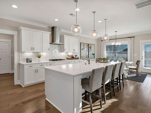 The two-story Townsend plan has three bedrooms and two-and-one-half baths. The well-organized kitchen has a corner pantry and breakfast bar that overlooks the dining area and great room. The primary suite is located downstairs and overlooks the backyard. Upstairs features two additional bedrooms, both with walk-in closets and a hall bath. The upstairs bonus room is perfect for an office, reading room or nursery. Options for this home include a fireplace in the family room, outdoor storage shed and a two-car garage. An extended primary suite, extended secondary bedroom and a butler's pantry are also available with the two-car garage.