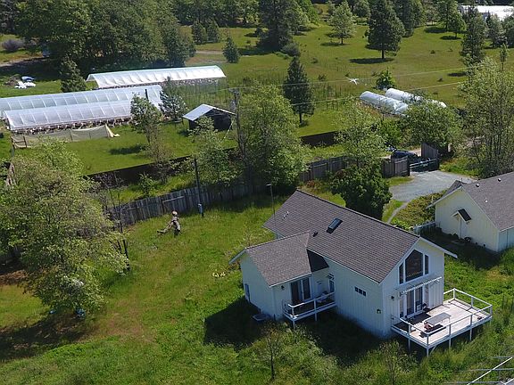 Modern living in this 2010 cottage on 3.31 flat and sunny acres with 2.1 acres of water rights from the pond. Gordon Longhurst custom home with fantastic finishes, amazing stone fireplace and high ceilings. Enjoy the views out the tall arched window from the loft and the A frame styled window over french doors to the large deck. 2 car garage with half bath. Large metal building / barn. Greenhouses to be removed, buyer may have them remain upon request.