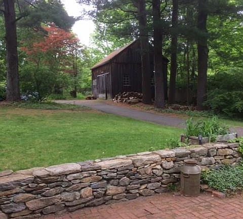 Antique lovers relax in a spacious, chestnut floored living room, in front of the fireplace or on the floral bordered brick patio amid towering maple trees and white pines, lending a sense of granduer. Beyond, is a post and beam barn, a variety of perennials blooming through most of the year and the pool's private, iron gated, lush sanctuary evoking the historical character of a secret garden, worth the effort for a needed pool house restoration. A modest but charming interior of 3 bedrooms, kitchen, living room and 1.5 baths is expandable but comfortable as is. Quiet, private with neighboring land trust, this location is most desirable and close to lakes, activities and shopping convenience. All the pieces are here for a sweet retreat.