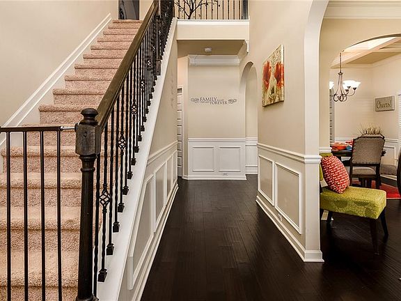 Incredible like-new home in the highly sought after Rivendell Subdivision! Built in 2016, this home has all the upgrades you'd want: dark hand-scraped hardwood floors, chair railing galore, coffered ceilings, plantation blinds, and so much more. The spacious kitchen has been fully upgraded with double stainless steel wall ovens, gas stove, granite countertops, and a large center island perfect for entertaining. Upstairs boasts an oversized master suite with private bathroom, three guest bedrooms and laundry room. A covered porch in the back with large shade trees provide the privacy you desire.