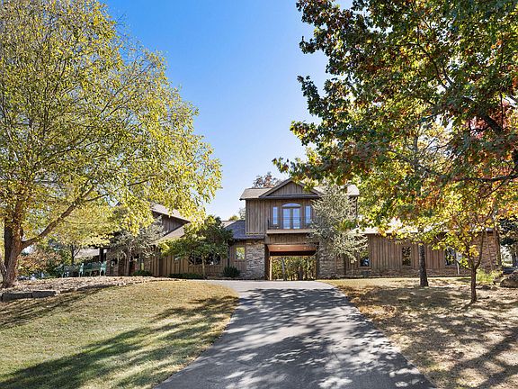 Welcome to Saddlebrooke! A sought-after Premier Subdivision in the perfect location. This custom built home with rustic charm is situated on 1.06 acres and is the ultimate in Luxury living! You will be completely mesmerized as you pull up the long drive, taking in the landscaping and massive stacked boulder rock walls, located on a corner lot giving you the feeling of seclusion & privacy! This home features 3404 sq. ft., 4 bedrooms - (3 ensuites), & 4 1/2 baths. As you step onto the front porch you are greeted with massive Douglas Fir exterior & interior timbers reclaimed from 19th century Tennessee cotton mill and installed by Raymond Robirds, A Vermont Casting Montpelier wood burning fireplace insert installed in 2023 that will heat up to 2200 sq. ft., crown molding throughout, hardwood & travertine flooring, custom maple interior doors, Custom knotty alder kitchen, laundry and bathroom cabinets, Granite and quartz counter tops - cabinets & tops replaced throughout the last 5 years, Master Bedroom has large sitting area, soaking tub, walk in shower, double walk-in closets & private deck. Upstairs offers a complete private suite with a bedroom/office & full bath. There's also a 3 car garage, 1,000 gallon propane tank, 2 water heaters & more! Once you take a look at this unique & special property, you will fall in love! Enjoy Saddlebrooke Amenities including pool, tennis, clubhouse & walking trails! Ideal location off Hwy 65 with access to Branson or Springfield!