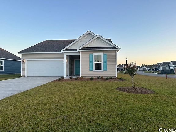 The very popular Georgetown home. This Georgetown features 2 bedrooms, 2 baths, a study, and Carolina room. The generous kitchen boasts 36" Sinclair Cafe cabinets by Aristocraft, Progress Lighting pendant lights over the spacious kitchen Island, Granite counter tops, and Stainless-Steel Whirlpool appliances (natural gas range, over the range microwave vented to exterior, and dishwasher). Mohawk REV Wood laminate in the kitchen and foyer. Mohawk carpet in the dining room, great room, bedrooms, and study. Daltile tile in both baths and the laundry room. An Energy Star Certified and Indoor Airplus Qualified home with an ERV-Energy Recovery Ventilator fresh air system and an Aerobarrier seal to create a more comfortable home with better indoor air quality and a lower utility cost. A natural gas tankless Rinnai water heater located inside the garage, Low-E Ply-Gem windows, and a fully sodded lawn with foundation shurbs. Amenities include a community pool and pavilion.