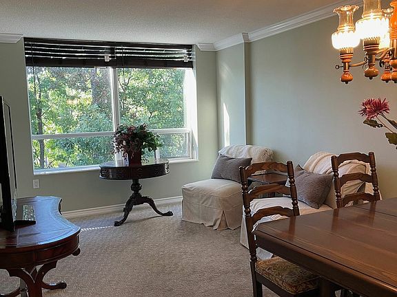 Fantastic alternative for downsizing! Spacious 1 bdrm plus den layout with updated kitchen overlooking dining/living area! Walkout from Living Room to private balcony overlooking mature trees! Ensuite Laundry! Primary bdrm has walk-in closet! Nicely renovated bathroom includes glass enclosed shower with seat and safety bars plus a high end bidet style toilet! Crown moldings throughout and recently painted. Easy access with an automatic unit front door opener. Retirement l at it's best! "hearthstone by the Lake" resort style condo ownership. Clubhouse fee includes 1 hour of monthly housekeeping, $250 + meal/dining room credit (meals can also be delivered to your unit for a fee) shuttle service, library, pool, fitness facility, games/billiards room and beautiful outdoor courtyard! Access to on-site medical, pharmacy dispensary, handyman and emergency call system.
