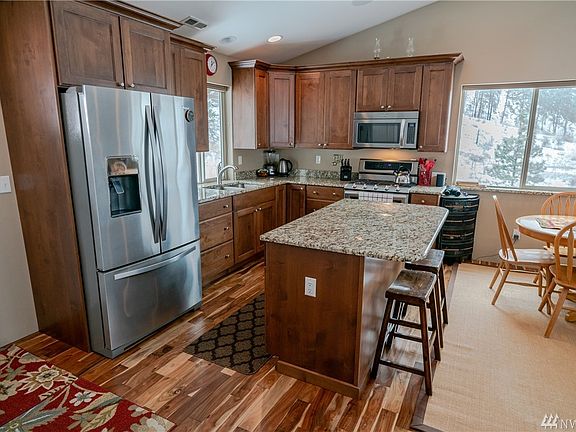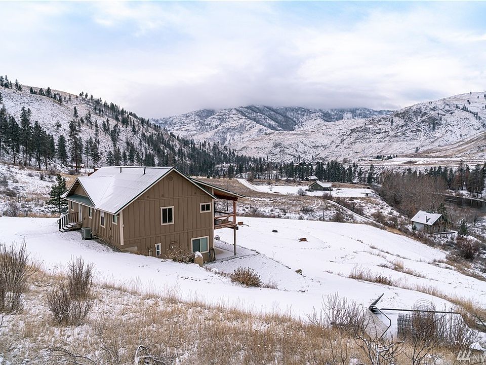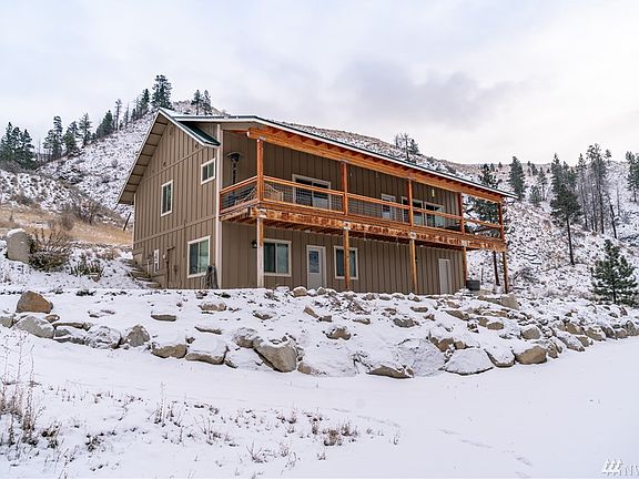 Nested between Chelan and Winthrop, this home is the gateway to all the Methow Valley has to offer. Vaulted ceilings accompany open-concept living, kitchen and dining w/ stainless/granite, soft-close cabinets and double oven. 3 beds including master w/ attached bath on main. Potential separate living downstairs has family room w/ kitchenette and bedroom w/ attached bath. Attached 2 car garage, 2 full service RV hookups, great producing well, sprinkler system and panoramic river/mountain views.