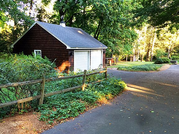 Charming farmhouse-style Ranch w/pastoral charm that fits in w/the landscape. Inviting open flr plan w/Living, Family & Dining combined. Living rm has wood-burning fpl w/built-ins & Family Rm has a vaulted ceiling w/wood planked ceiling & rustic beams, bookcase built-ins & ceiling fan. Both living areas have French doors to a large wooden deck & lovely views of the backyard. Property is wooded, private & serene. There is a remarkable old Beech tree that sits in front & significant, mature plantings thruout. Outbuildings incl a 2-car det gar, old pony barn & dollhouse at the rear of the prop. Downtown Fairfield, train & shopping are only 2.5 miles away. Charming home & property are ready for it's next renovation! House being sold AS IS.