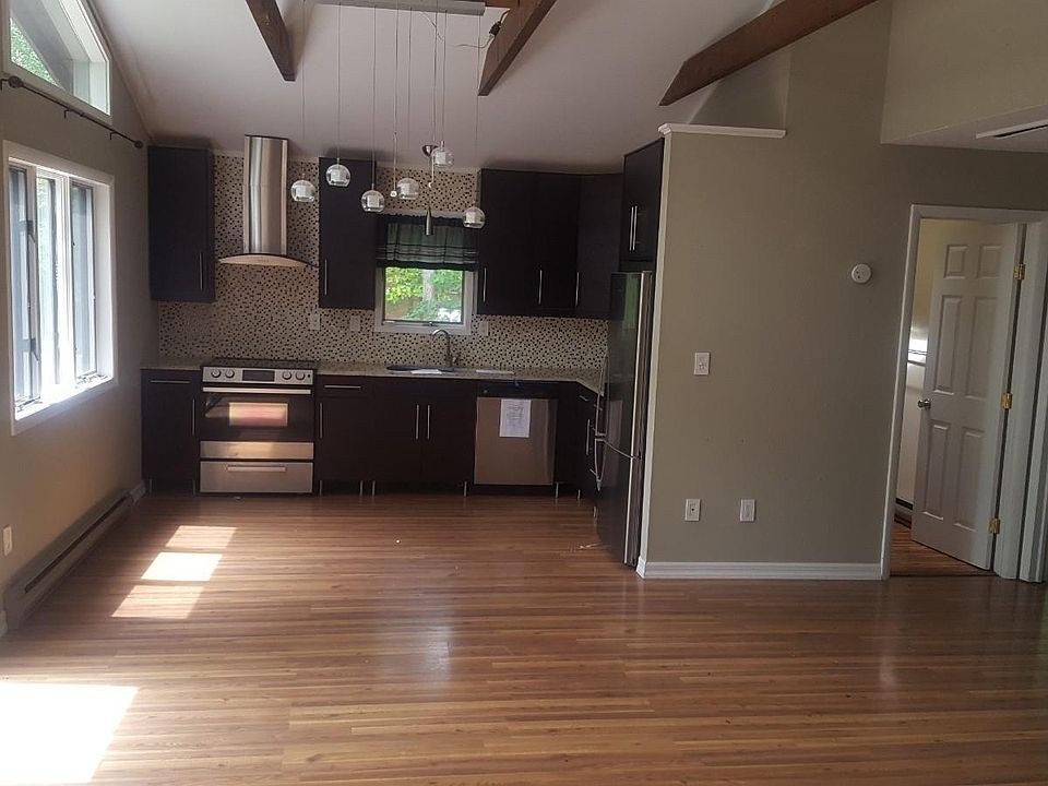 Three Bedroom Two Bath with one car garage Raised ranch. Features a modern open kitchen with stainless steel appliances and granite counter tops. Two European Bathrooms with European vanities porcelain and ceramic tiles, hardwood floors, fireplace in the living room. Two sliding glass doors out to large deck for entering, and enclosed porch. Located on a oversized corner cul-de-sac lot. A short walk from lake and community pool.