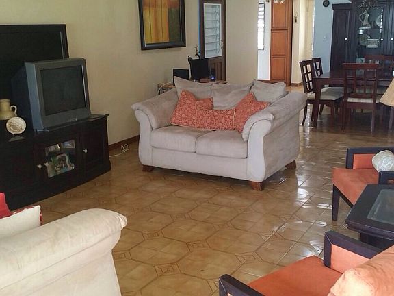 Perfect Family Home!!! 3B/2B with 1,588 sq ft & 593 meter lot. Specious! Move in ready! High vaulted ceilings in ALL rooms. Specious bedrooms, huge master with on suite. Large open concept living area, dining room, large updated kitchen with St. Steel appliances and eat in table area, & large separate laundry room. Beautiful large fenced in front and back yard with beautiful trees. Ceramic tile throughout, fans in all rooms, air condition in all bedrooms, modern light fixtures, gated community. Privacy neighbors! Great sunlight and lots of great costal breeze. Awesome location!! 10 minutes to San Juan with great access to free way! Call Now!!! 24/7