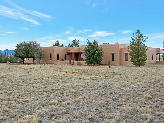 Sellers will accept or counter offers from $789,900 to $924,900. High Desert Hacienda Where Solitude and Beauty Abound And an Architectural Gem Awaits with 2 Purchase Options: (a) 18.16 acres for $789,900 or (b) 37.83 acres for $924,900. This stunning Santa Fe style home is located on the high desert grassland of S.E. Arizona's ranch and wine country. Among its many exceptional features are 2 large master suites (650 & 560 sq.ft.) , high ceilings (14', 12', 10' throughout) and an expansive, open floor plan. A fully insulated, 2,000 sq.ft. (40' x 50') all-purpose building includes a large workshop, extensive built-in storage and room to park a 44' RV. The property enjoys mountain views in every direction and is adjacent to a 30,000 acre Babacomari Ranch. A remarkable property in every way. Features Include: Home General: Four Bedrooms (Two Master suites), Great Room, Dining Room, Study/Office, Entry Hall, Card Room, 31D2 Baths, 3-Car Garage with Exercise Area. Multipurpose Building: 40' x 50' (2,000 sq.ft.). Large workshop and extensive built-in storage. 3D4 bath. RV storage up to 45'. 30 and 50 amp service. Two 14' overhead doors. Architectural Features Hand-crafted log beam ceilings in most rooms Italian porcelain tile floors throughout Custom solid rustic cherry kitchen cabinetry Custom solid alder cabinetry in baths, office and hallway Marble countertops in kitchen Granite countertops in baths, office and laundry room Andersen windows and doors with mesh screens 8' custom cedar plank, wire-brushed interior doors by Butler 2x6 frame construction for maximum insulation and energy efficiency 14', 12' and 10' foot ceilings Front and back covered patios with walled garden areas Great Room 14' custom rock fireplace Built-in sound system. Kitchen Stainless steel appliances: GE Monogram: 6-burner stove w/griddle. Side-by-side refrigerator/freezer. Dishwasher. Advantium convection oven/microwave. Trivection self-cleaning oven Island: Large workspace, with prep-sink and storage Master Bath 135 sq.ft. His & Her divided Walk-In Closet with extensive built-in storage 4' x 6' Glass Block, Surround Snail Shower Kohler 6' whirlpool bath with air-jets 2nd Master Suite Separate Sitting Room, bathroom and walk-in closet with built-in storage Office Laundry Room. 8'x12' with 12' granite work/folding counter, utility sink and a full wall of cabinets and laundry separating bins. Plenty of room for washer, dryer and two refrigerators or freezers. Heating and Air Conditioning. Three heating and cooling zones controlled by separate Trane HVAC units utilizing both electric and gas for maximum comfort and economy. Casablanca ceiling fans throughout. Water. Property has its own, private water well. The home has two hot water heaters, both with recirculating hot water. Security System. Hard-wired. Fencing. Property is surrounded by 6' field fencing with solar powered front gate. comer