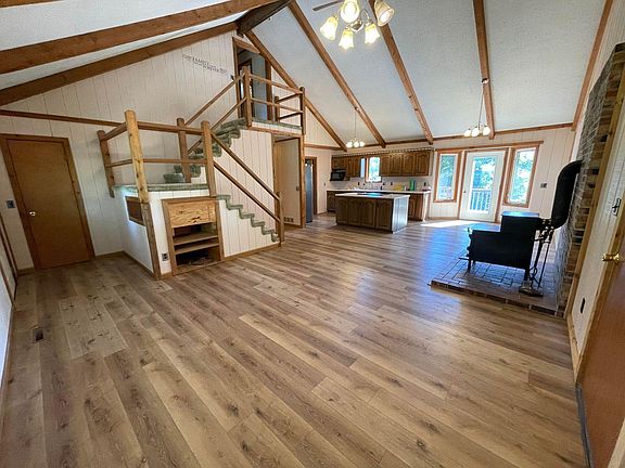 This large house located in Ava Mo has a long private driveway leading to the 3100sq ft home. It sits right outside the city limits on 5.5 acres. The land has a large level and open yard with a nice garden area and the remaining land is wooded. When entering the home, you are welcomed with an open floor plan and high vaulted ceilings. There is 1 bedroom, 1 bath, and a utility room with a handicap walk in tub (never been used) central heat and air, and a 2 car garage. Out the dining room doors there is a large deck that has hosted tons of fish fries, and could be great for sun tanning, or having a BBQ! Going up the stairs in the house it overlooks the living/kitchen/dining area. There are beautiful beams going across the celling. Upstairs has 2 bedrooms and 1 full bath. Both rooms have nice sized closets and some storage areas. Downstairs leads to the basement that features a small kitchen, access to the one car basement garage, 1 bedroom, 1 full bath, storage room and a family room. The basement family room leads outside to a nice patio facing the wooded land. The basement could be rented out as an apartment, so it has everything you could need! This has a beautiful long private driveway lined with blooming trees. Enjoy the country living with no restrictions, right on the edge of town!
