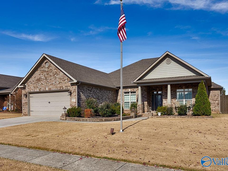 Indulge in luxury with this 4BR, 3 Bath home featuring an open floor plan, formal dining, designated office space and 4 car tandem 915 sqft garage!! The kitchen boasts a vented gas cooktop, island, pullout drawers, glass doors, and a large pantry. Breakfast bar seating. Custom trim, recessed lighting, and granite in all baths. Primary bedroom has new carpet, patio access, fabulous ensuite and enormous 8X13 walk in closet. Large covered front porch, substantial sized enclosed back porch and a cement patio with a gazebo awaits. 4 car tandem garage offers two drop-downs for attic storage. Close to Madison shopping, and dining and quick access to highway!