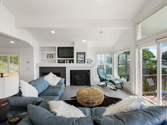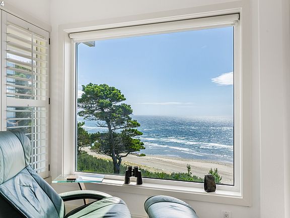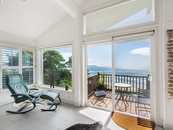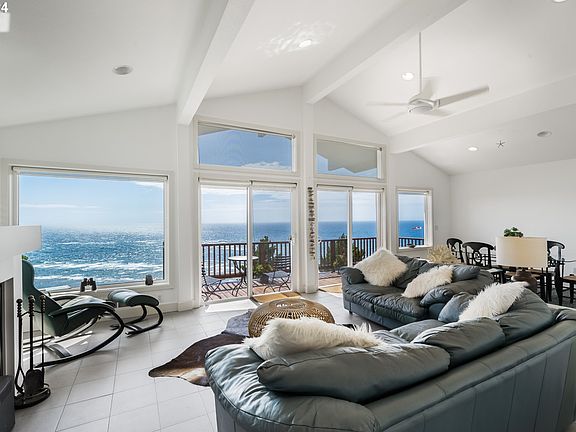PRIME OCEANFRONT SETTING at the end of the road with your private panorama spanning from Netarts Bay, Cape Lookout, down the long sandy beach & all the way across the whitewater expanse to Storm Rock of Oceanside's 3Arch Rocks. View from every room except the sauna room. Oceanview hot tub in backyard. Open greatroom with masonry frplc, large deck, porcelain tile floor. Primary bdrm on entry level, walk-in closet, gorgeously remodeled quartz bathroom with huge shower & ocean view.