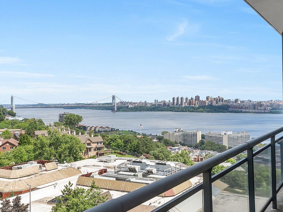 This spacious and bright unit offers a magnificent view of the Hudson River and George Washington Bridge. Apartment has a large living room, spacious bedrooms and large windows. Primary bedroom has 2 walk-in closets. Unit has stainless-steel appliances, washer and dryer in the unit, a wall of windows, 9 foot ceilings, and a large balcony to enjoy the beautiful view. This luxury building offers beautiful outdoor landscaping as well as plenty of amenities including a newer gym, pool, play room and playground, a promenade area with cozy gazebo, 24/7 security and valet parking including parking for guests, party room, library, dry cleaning on site, storage and bicycle room. The location is ideal for NYC & local commute, just a few steps to the bus stop and shuttle to the midtown and downtown ferry, short drive to GWB, Lincoln Tunnel, Weehawken Ferry, Light Rail and easy access to major highways. Close to Shops&Restaurants.