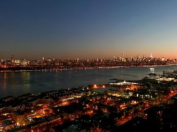 RARELY AVAILABLE!! Bright and sunny 1 Bedroom 1 bath Condo located on the 17th floor with AMAZING unobstructed New York City and River Views at THE CARLYLE TOWERS! 900 ft. Enjoy peaceful sunrise and sunset from every room. Floor to ceiling windows. 10ft ceilings. Large terrace. Laundry in unit. Newer appliances, new Flooring, freshly painted, with custom window blinds. The luxurious Carlyle Towers amenities include; 24hr concierge, full time Valet, outdoor pool, newly built exercise room on 2nd floor, children's play room, and community room. Easy access to NYC via NJ Transit or NY Waterways ferry system. (1 month brokers fee) Included in rent are: use of all building amenities(valet, gym, pool) one indoor parking, hot water, water.
