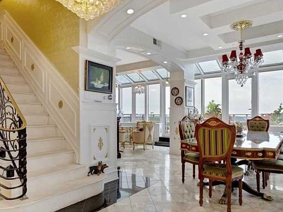 Rare G-line Duplex Penthouse w/ magnificent panoramic views of the GWB, to the NYC skyline down to the Verrazano Bridge! Enjoy the open floor plan, marble floors, high ceilings, custom moldings, frpls, lg windows, capturing the best views of Manhattan! Access the glass doors to the wrap-around terrace w/ majestic sunsets, sunrises & Hudson River views! Lounge in your spacious living & dining rms or breakfast area next to the Gour. Kit w/ stainless appliances, wet bar, wine room, full bath & elevator! 2nd fl: Brazilian wood flrs throughout! Wake up to the breathtaking views in your gorgeous master bedrm ensuite w/ frpl & 2 ensuite bedrms. All bathrms are custom w/ heated flrs. Fully furnished to perfection w/ a cleaning service, 2 indoor & guest parking spaces w/ storage. White glove concierge's service w/ 24/7 security, doorman, valet parking, pool, gym & so much more! Mins. to GW-bridge, ferry & transportation to NYC. Perfect for the discerning & sophisticated person!