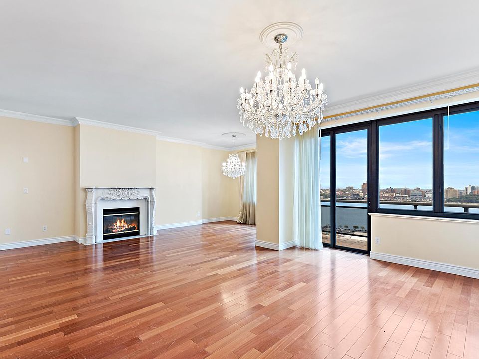 This spacious, 3 bedroom, 2.5 bath, Appr. 2900 sq. ft. duplex penthouse suite comes with beautiful, unobstructed views of the NYC skyline. Complete with walk in closet, private sauna, balconies on both floors, in unit washer/dryer and fireplace. Amenities: gym, 24-hour doorman, outdoor pool, library, community room, visitor valet parking, close to shopping and all major NYC transportation. No smoking allowed