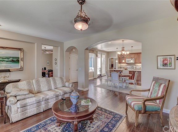 FOUR SEASONS "Large MELLO ROOS PAID on this immaculate home that is ready to move into for the discerning buyer. Monarch II Model (2 BR 2 BA + DEN/OFFICE - 1,540 SQ. FT) is located on cul de sec with HOA maintaining front and back landscaping and lawn. This stunning home has graceful arched doorways and walls , classic glass front door, elegant laminate wood flooring & upgraded cabinets, plantation shutters with custom coverings, stylish ceiling fans, and entertainer's dream kitchen with Granite Counters and appliances. The master suite is spacious with a roomy walk in closet. The master bath has upgraded large tiled shower. The guest bedroom is very versatile with a designer murphy bed, so can be used as an optional space. $50,000 of UPGRADES. The enclosed courtyard is a relaxing secret garden area with limited view of the Mountains. Enjoy grapes from your very own grape vines and includes artificial grass. FOUR SEASONS amenities include: 3 Clubhouses, Hiking & Nature Trails; Movie Theater, Swimming Pools which one is indoors & Spas, !!! Many more activities such as cards, billiards, hobby classes, gym, hairdresser etc. Close to shopping