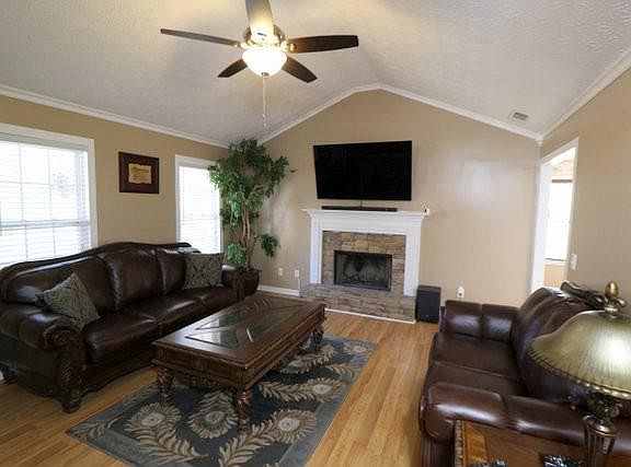 A PLACE TO CALL HOME! Lovely 3 bedroom and 2 bathroom ranch in quiteneighborhood with large backyard. Kitchen has been upgraded with granitecounters. BRAND NEW OVEN. Large family room with fireplace with vaultedceiling. Owner suite with walk in closet and upgraded bathroom. Hallbathroom has been updated also. Wrap aroung porch and NEW ROOF. Spaciousbonus room great for entertaining.