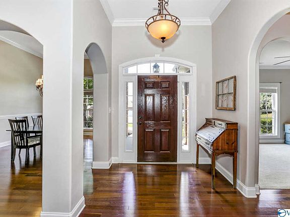 This beautiful single owner 4 BDR/2.5 BTH custom built RANCH Home boasts an open floor plan with SOARING ceilings, gorgeous HARDWOOD floors, beautiful arches, crown molding, GAS FIREPLACE, FLEX room, and more. Home recently painted SW Popular Gray. You will love the shaded back yard and porch perfect for family cookouts and parties! Isolated MASTER retreat features glamour bath and spacious WALK-IN closets. Neighborhood has a community pool, basketball goal and fishing – all just across the street! HOA dues paid through 8/2020. Conveniently located to restaurants, shopping, entertainment, hospitals and Redstone Arsenal. Schedule your showing today!