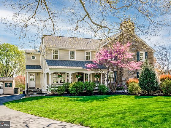 Welcome to this rare find in Merion Golf Manor! This beautiful expanded stone colonial offers an amazing location in a highly sought after neighborhood with the features and upgrades that check off all the boxes! Situated on a corner lot, a blue stone walkway leads past a stone walled patio with custom lighting and exterior accent lighting, before continuing to the front entrance. Entering into the center hall, you'll notice the beautiful hardwood floors that run throughout and the custom plantation blinds in both dining and living rooms. To the left, you'll find a formal living room with gas fireplace and pocket doors that open to the back great room. To the right of the center hall, you'll find an elegant formal dining room with wainscoting and crown molding that leads to a beautiful modern open kitchen. The kitchen includes custom cabinetry, stainless steel appliances (double oven, cooktop with down draft, dishwasher, microwave & refrigerator), granite tops, tiled backspace, recessed lighting, and a center island with space for 4 stools. The open concept continues with a generous sized secondary dining area connected to a large great room with gas fireplace and sliders that lead out to a charming side covered porch that overlooks the yard. Behind the secondary dining area, you'll also find a nice sized mudroom with a coat closet and pantry, a sink, and exit to the back driveway down stone steps. Lastly, you'll find a well placed 1/2 bath at the end of the entrance hall. The second floor presents 3 good sized bedrooms, a full hall bath with tub and tiled surround, a separate laundry room with sink and cabinetry, and an expansive master suite. The suite includes a vaulted ceiling bedroom, large walk-in closet and stunning bathroom with two vanities, a seamless glass tiled stall shower and separate toilet room. Pull down stairs from the 2nd floor hallway also provide easy access to a floored storage attic. Stairs off the back of the center hall lead down to a finished lower level (approximately 800 sq/ft), giving further space to entertain and relax, as well as, provides further storage, access to utilities and a walk up exit through bilco doors. Outside you'll notice thoughtful mature blooming landscaping, a lush green yard, and a private driveway ( with side-by-side parking) with a large shed offering great storage. Other great features of the home include new 2 zone HVAC systems (installed in 2021 & 2022), energy efficient replacement windows throughout, electric fence for pets and loads of natural light. This incredible location is just one block from the world famous Merion Golf Club, and walkable to parks (Merwood & Paddock), schools, public transit (High Speed Line & Bus), Oakmont Shopping & dining and more! Don't miss this wonderful opportunity to own in the Manor!