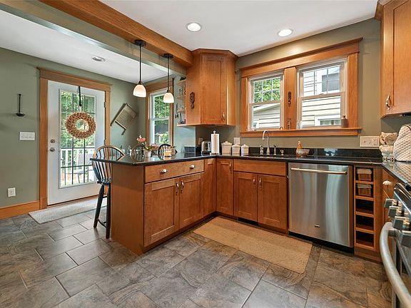 Beautiful home in a spectacular neighborhood. Meticulously maintained, with updates throughout. Newly remodeled kitchen and baths, hardwood floors, crown molding. Upstairs are 3 spacious bedrooms and a full bath as well as a full walk up attic for storage. Private backyard with a deck and 1 car garage. Beautiful covered from porch to enjoy the views of the river.
