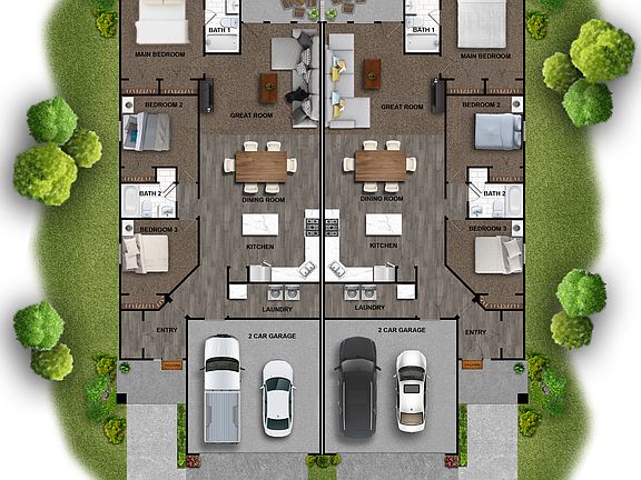 The Thoroughbred is a 3 bedroom, 2 bathroom ranch style duplex. This all brick home has a 2 car garage. With over 1,450 square feet of living space, each room is nicely sized and the living areas are spacious, but still cozy. The covered patio gives you plenty of privacy to sit out and relax.-All Brick-3 Bedrooms-2 Bathrooms-2 Car Garage-Granite Counter Tops-Stainless Steel Appliances-Hard Surface Flooring in Main Living Areas-Carpet in Bedrooms-Covered Patio