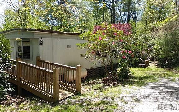 Close-to-town mobile home tucked away on pretty .48 acre at end of road. Nice deck over lush private yard. 2 BR/1 Bath with public water. Septic has been inspected and is good. Mobile home can be replaced one time per Town of Highlands statute. It would be hard to find another place in Highlands city limits for this price.