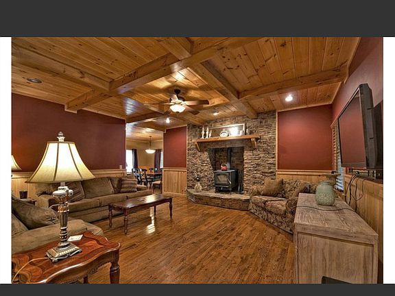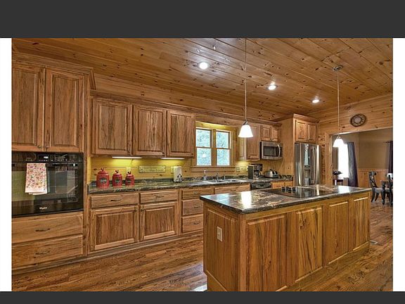 Beautiful mountain home with 3 bedroom two baths and a half bath with lots of amazing extras all on 2.33 secluded level acres. The peaceful feeling starts as you enter the one of a kind gated community. Easy drive to home that has great curb appeal and wrap around deck and it's own custom fire pit. Walk into the front door and your greeted to a spacious living room with exposed beams, beautiful oak floor, huge rock fire place, and a good combination of tongue and groove pine wood and dry wall. kitchen has a huge island and plenty of wormy maple cabinets with glass fronts that set this kitchen apart from all other kitchens. All the bedrooms are large and master is on the main with custom tile shower and bath. To much to mention. Must see !