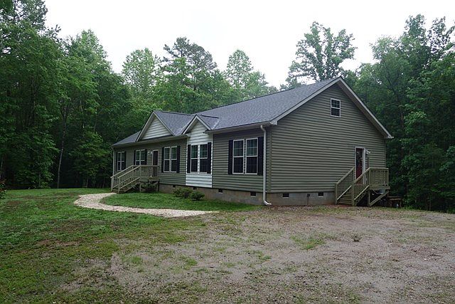 A Hunter's Haven, privacy of 20 acres with upscaled spacious modular with unfinished second floor for expansion. Family room opens to the kitchen that offers serving counter, lots of cabinets, pantry, desk area & equipped with major appliances; a breakfast area that joins the formal open dining room and sliding door to back deck, a split 4 bedroom floor plan with large closets; 2 baths; off the family room is the master suite with walk-in closet, bath with garden tub, separate shower, double sink vanity & linen cabinet; a spacious laundry room. You will enjoy relaxing on the back deck overlooking the wooded area. Located 20 minutes to Lake Gaston and to Kerr Lake. Home warranty.