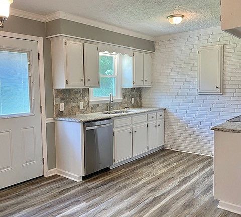 All brick completely renovated home with new roof, driveway, windows, flooring, paint, fixtures, concrete patio and more! Also vapor barrier, termite treatment and fungus treatment recently done. Granite countertops in kitchen with a beautiful distressed brick accent wall. Stainless appliances! There is still some items that remain to be completed. Don't let the sq. footage number fool you- This home feels much more spacious! Sold As Is