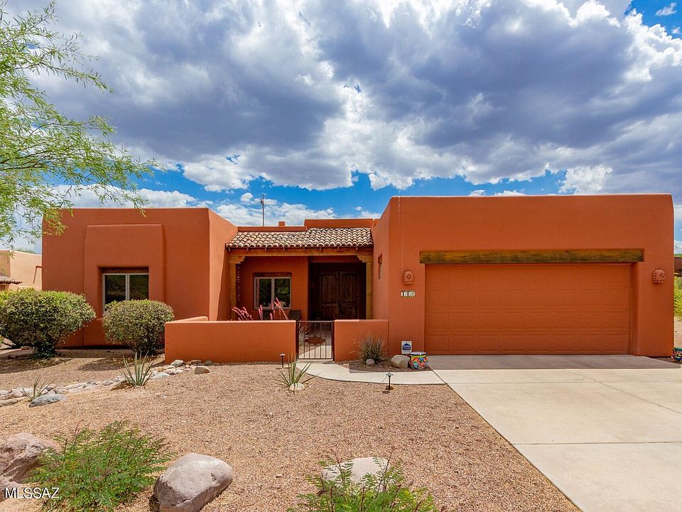 One of a kind floor plan with three bedrooms, two full baths plus bonus room in Santiago sub-division of the Barrio de Tubac located on a corner lot with mountain views. Bordered by common areas on the south and west sides providing sunrise and sunset views being offered by the original owners. The walled front courtyard has a water feature and includes a large covered entry way with a view of the Santa Rita Mountains. As you enter the home through solid mesquite wood double doors you walk into the entry area overlooking the bright open concept layout with oversized scenic windows providing a southern exposure with a direct view of the Tumacacori Mountains. A perfect layout for entertainingfriends and family. Ceramic tile flooring is throughout the great room, dining area, kitchen,