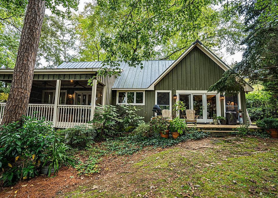 Amazing Sinclair cottage that brings the country to the lake. The home has gorgeous wood flooring throughout with verities ranging from Heart Pine, Brazilian Cherry and other salvaged woods. Most of the walls are locally milled pine with a beautiful whitewashed finish. The living space has an open concept with vaulted ceilings and a free-standing stove that separates kitchen and living room. The floor to ceiling windows brings in the outside views. A beautiful copper range hood and unique butcher block island complete the kitchen. The master bedroom is a great size and has a large walk-in closet. Immediately off the master is a screened porch. The home is surrounded by gardens that provides an oasis of beauty and privacy. The boathouse has a cozy living space and large covered deck.