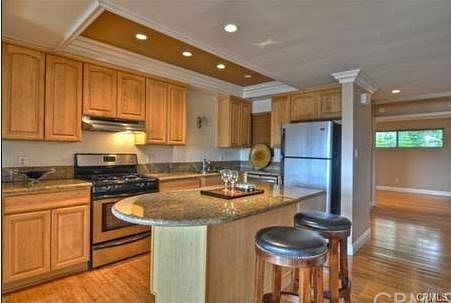 Beautifully remodeled and completely upgraded penthouse /condo style unit in the highly desirable Laguna Pacifica building in central downtown Laguna. This very spacious 1 bedroom, 1.5 bath apartment features mirrored wardrobe closets, European bathroom with Murano glass sink, bamboo hardwood floors, custom cabinetry, granite counters, stainless steel appliances, crown molding, custom recessed lighting and a beautiful sundeck with a 180-degree city. There is also a huge common deck and lush garden area for all residents to relax and enjoy, as well as, a remodeled community laundry room. Elevator access makes moving and grocery shopping easy! Walk out your front door and across the street for all that Laguna Beach has to offer in delicious restaurants, boutique shops and, of course, the beach.