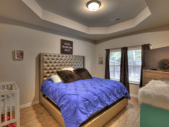 Four bedroom two bath open concept plan on large fenced corner lot. Kitchen features granite countertops, large island, stainless steel appliances, walk in pantry and recessed lighting. Granite countertops in Master and 2nd bath, Isolated Master includes large walk in closet, double vanities, and separate shower and tub. Laundry also includes separate sink. All Temp windows, and programmable thermostat. Man Cave garage set up, still functions as normal garage space as well!