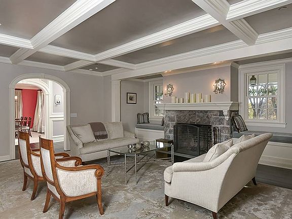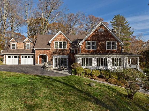 Extraordinary top-of-the line finishes & detail abound in this completely renovated Nantucket style colonial on 2.25 acres, yet moments from town& train.Offering the finest materials: honed granite,coffered ceilings,Waterworks baths,heated flrs,wine cellar,state-of-the art sparkling white kitchen,3 fpl's,beamed cathedral ceilings,built-ins, chocolate colored hardwood flrs, mud room, elegant master br suite/sitting area with fpl,slate patios & covered porch. Top-of-the-line renovated en-suite bathrooms in all bedrooms. Extra thick custom millwork throughout-crown moldings,keystone arches,wainscoting, chair rails & wall panels. 4BR, lives larger-extra spaces include sunroom, playroom/studio, rec room, front,back & side halls. Immaculate, move-in condition, charm combined w high style & modern amenities. Sophisticated & chic, yet warm & inviting. No detail overlooked, superior quality construction & materials. Thoughtful floorplan, truly one-of-a-kind. Taxes will be reduced per sale price