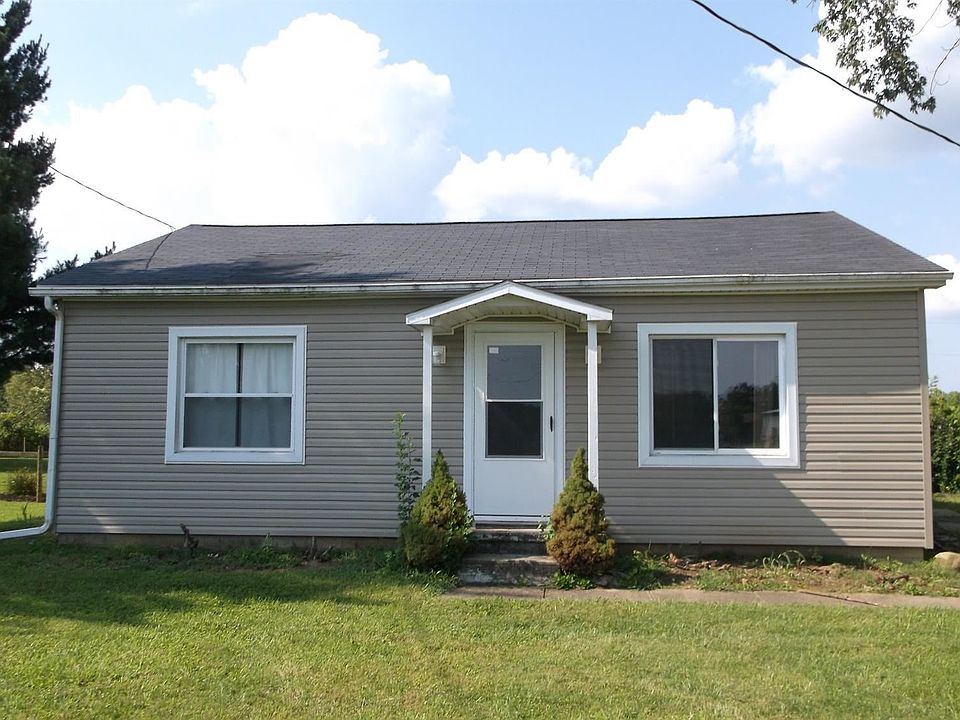 Ranch home. Spacious living rm, huge eat in kit w/SS appliances, new also cabinets & pantries. Covered deck off master bdrm or family room. 2 car detached gar w/concrete floor, electric. Country setting w/little to mow. 4 mi from West Union. Agent owned.