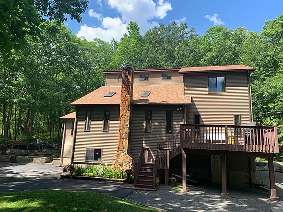 Light & Bright Contemporary Home located in the amenity filled community of Hemlock Farms in the heart of the Pocono Mountains. Walking distance to the Pool and Lake, 5 minutes to Route 84 and shopping....Only 2 hours to NYC! You will have room for everyone with 4 spacious bedrooms and 2.5 bathrooms, Private Master Suite with large walkin closet & bathroom, Open Floor Plan with catherdral skylight ceilings leading into your updated kitchen with Stainless appliances. Separate Family Room with French doors and relaxing Sunroom for year round enjoyment. There is room to grow in this home with the potential of the unfinished basement and workshop. Trex decking, 4 year old roof, 2 car garage and maintenance free vinyl siding should make this home at the top of your list!