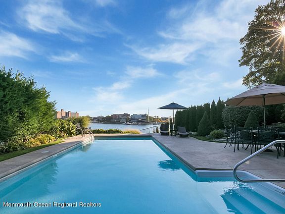 LUXURIOUS WATERFRONT HOME ON THE NAVESINK RIVER! Rarely do you find such a beautiful home, perfectly set high & dry with sensational river views from nearly every room. Well appointed throughout w/ a sun drenched open floor plan & oversized windows. Beautiful custom millwork, hardwood flooring & multiple terraces overlooking the river. Gourmet kitchen with oversized island, professional grade appliances, and eat-in area with French doors to rear patio. Luxurious Master suite with tray ceiling, his/her closets, private balcony and spa-like bath with sauna. 2-car garage, walk-out basement, heated saline pool, private dock & SO MUCH MORE! Close to everything - shops, dining, parks, area beaches & NY ferry. 2021-04-03