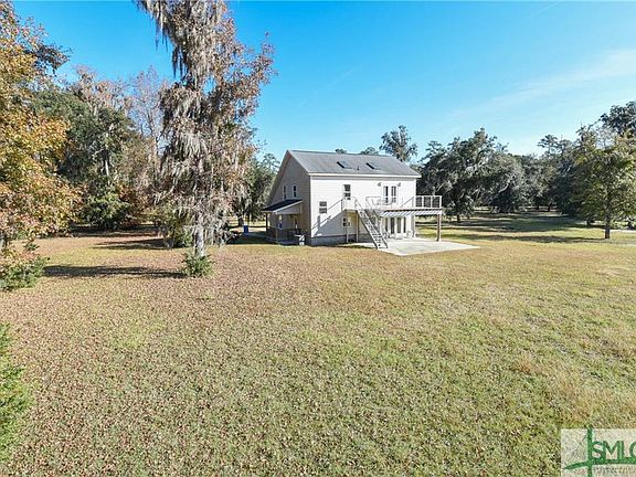 Amazing garage apartment with three-car air-conditioned garage, two-bedroom home on five acres with a large deck! Large walk-in closets. No carpet in this home. The kitchen has solid surface counters, real wood cabinetry and stainless appliances. Come live on five private acres in Richmond Hill and build your dream home or just keep this home! Upgraded flooring and spacious bedrooms make this home easy to live in. Spend time on the deck watching the sunrise or set! Fish in the stocked pond while you relax away the stress or have your own garden. Can park one 25 ft boat on the property. Upstairs master with cultured marble master bath. Note: Square footage does not include air-conditioned garages. Termite bond in place. Only county taxes which equate to approximately 1% of your sales price and include fire department dues, weekly trash pick up and biweekly recycle pickup. No flood insurance required!
