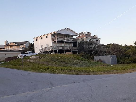 ~The Captain's Quarters is perched atop the 2nd Highest Elevation on the entire 26 mile Island...from Emerald Isle to Ft. Macon! This 2nd Row towering breezy beach home boasts Ocean views from EVERY ROOM consisting of 4 BR with an enormous master and 3 well appointed guest bedrooms. There is a full bath w new tub/shower combo to enjoy Ocean views from upstairs and downstairs offers versatile options for accommodating a group with a 1/2 Bath(sink/toilet) with a 3/4 Bath(sink/shower) across a 3ft hall & 1/4 Bath(toilet only room) There is an unfinished previously permitted separate private 650sqft 1br/1 bath apartment NOT INCLUDED in the 1975sq ft upstairs, which is entirely separate and not connected, on the ground level that has electrical roughed in, plumbing, etc. New vinyl siding 4 yo, huge still under warranty Goodman HVAC unit (outdoor portion), new sliding hurricane rated windows around the entire house except across the front, new exterior light fixtures across front of house. MAGNIFICENT OCEAN views abound this home from EVERY room on EVERY level!! This house is being sold in "as is" condition. If you are not pre-approved or a cash buyer and can close within 30 days you aren't eligible. I will pay a 2% buyers fee and welcome all realtors with their clients. Please text Laurie Ann for an appointment at {252}269~8785 Happy bidding...