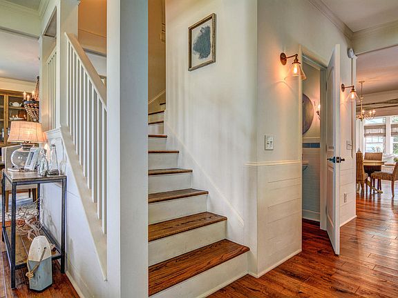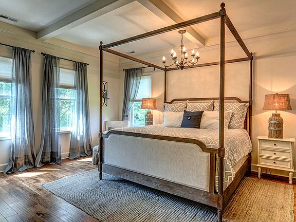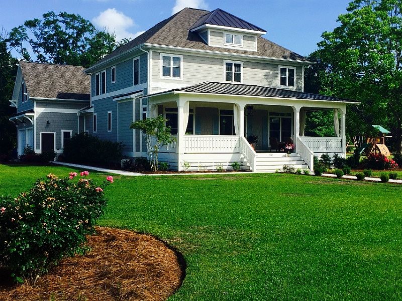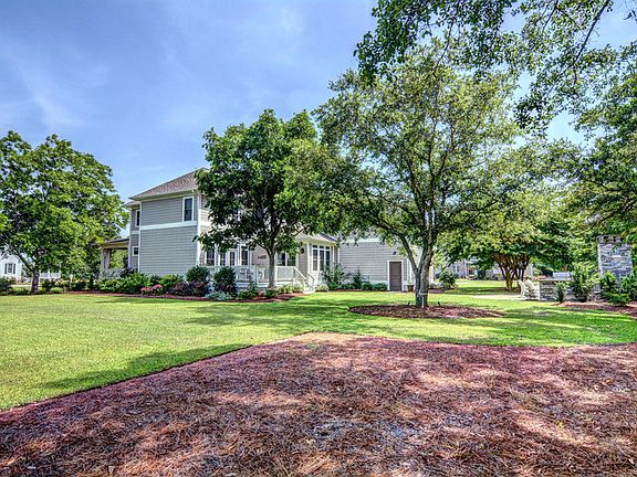 This beautiful custom coastal home is located in the premier community of Pecan Grove Plantation. The home is situated on a beautifully landscaped acre corner lot, with 4 bedrooms in the main house and an additional 5th bedroom with its own bathroom and staircase, perfect as a guest suite or au-paire. There are several options for entertaining on the oversized front porch, the gourmet kitchen that includes stainless steel appliances, granite countertops, pantry, and a bar with a wine fridge or head to the backyard to the deck or stone patio with built in fireplace that includes a built in grill and fridge. This home features top quality finishes, hardwood floors throughout and designer lighting. The open feeling of this home provides a living room with a coffered ceiling, gas fireplace and built in bookshelves. A sunroom, that is heated for a more relaxed place overlooking the backyard. There is a nook for eating and a formal dining room that is located in its own space just off the kitchen. Large master bedroom, three additional bedrooms and laundry room are located upstairs. The lush yard has several mature trees along with outdoor lighting with sprinkler system. Pecan Grove Plantation is a gated community that is located along the intracoastal waterways in Hampstead, NC. Pecan trees line the streets, where there are natural areas, a pool, clubhouse, tennis courts, playground and fitness center. The community also provides a onsite boat/RV storage area, two day docks and a private boat ramp. The location of the community is just minutes to the beaches and provides an award winning public school system. Homes in this highly sought after community don't last long.