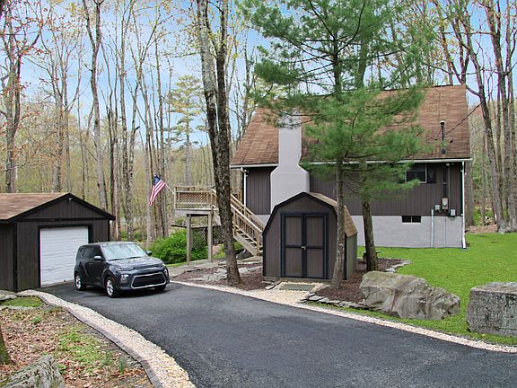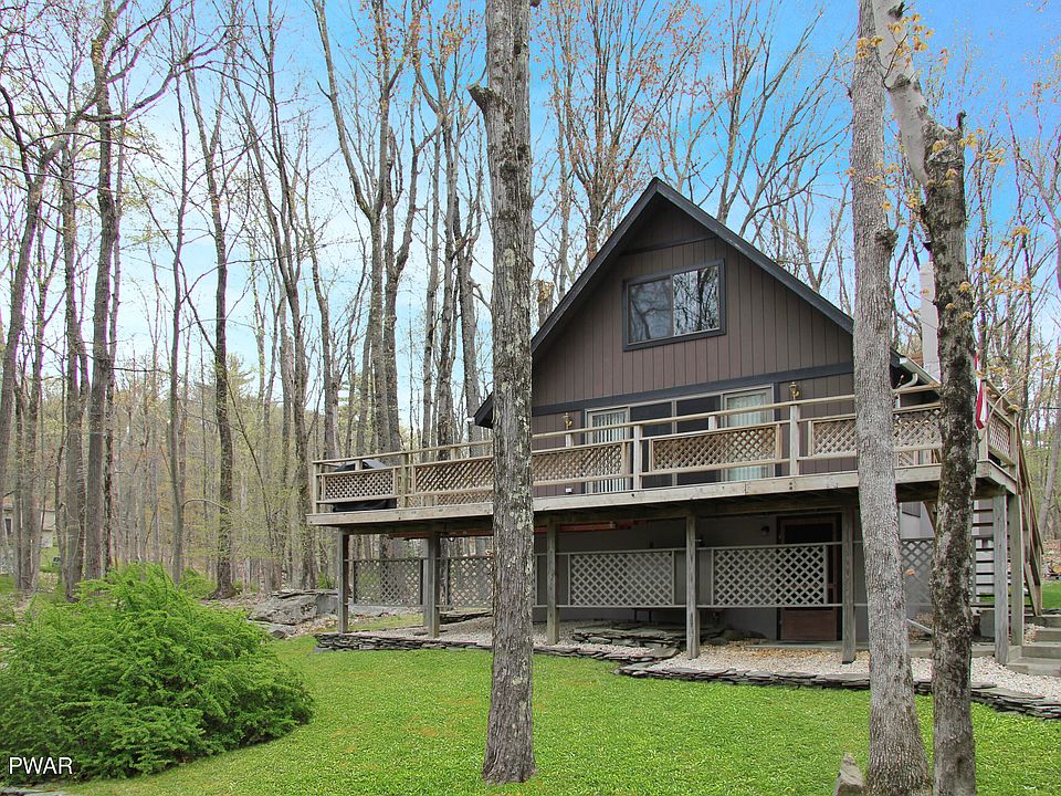 LAKE VIEW HIDEAWAY-PARK LIKE SETTING-Meticulously kept 2 BR plus loft retreat. Home features open floor plan, living room with brick fireplace and cathedral ceilings. Custom kitchen with appliances. Spacious lower level family room, and expansive deck for entertaining, detached garage and paved driveway. Easy access to lake
