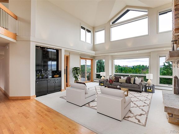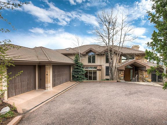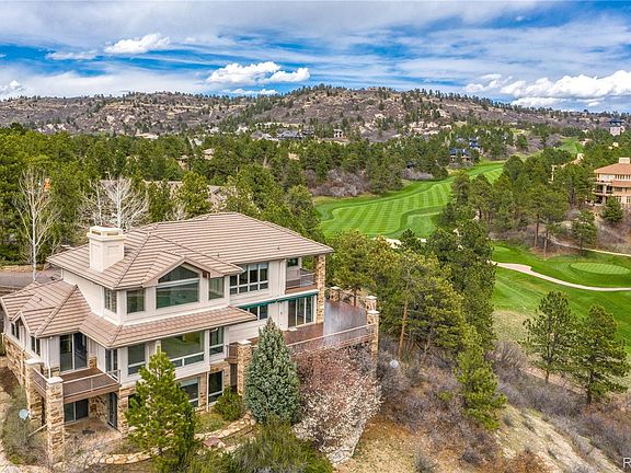 The most spectacular lot available on Castle Pines Golf Club. Over 2 acres of unobstructed views of Pikes Peak, 540 feet of golf course frontage on the 2nd fairway. Total privacy at the end of a quiet cul-de-sac. In the gated community of Castle Pines Village. Open floor plan, huge kitchen with Sub Zero refrigerator/freezer and two Bosch dishwashers, granite counters, main floor laundry, and vaulted ceilings throughout. A huge master suite on the second floor with a fire place, a walk out balcony, two large closets, and a 7 piece bath with a steam shower. The lower walk out level has one bedroom with an ensuite bathroom with a patio, two bedrooms with a Jack and Jill bathroom, a large family room with a projection television and a wet bar, a workout or hobby room with a flex room that can be a bedroom or an apartment. A rare opportunity to redesign this home and make it your own.