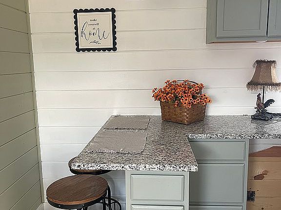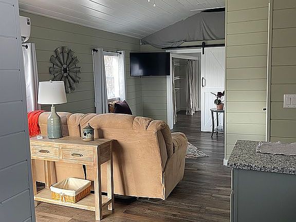 This is a tiny house. It has a kitchen, living room, bathroom and bedroom. The bedroom is large enough for a king bed, chest and nightstand. One side of the bedroom is a closet with shelves. There is a washroom where a stackable washer and dryer can go and that’s where the hot water heater is located. No owner financing. The tiny house will have to be moved. I have the number to the man that delivered it to me. This man will be able to move the tiny house wherever you would like. There is a split unit in the house. Which will heat and cool during the winter and summer months.