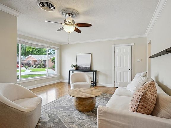 Adorable move-in ready home on a remarkable, large pie-shaped lot, at the end of a quaint cul-de-sac backing up directly to the Mississippi River Levee (the Levee bike path is literally your backyard)! This well kept home is turn-key and has a wonderful layout featuring 3 independent bedrooms and a separate office. The light filled open living and dinning spaces are directly accessible to the generous kitchen which is ready to go with great pantry storage, stone countertops, and a five burner gas stove. The primary suite is truly special with a wall of windows overlooking the backyard and levee. The primary bedroom easily accommodates a king size bed and has a beautiful, newly renovated bath and spacious walk-in closet. The spacious private backyard with a gorgeous mature tree has a gate that takes you right up to the levee. A rare opportunity in highly sought after River Ridge!