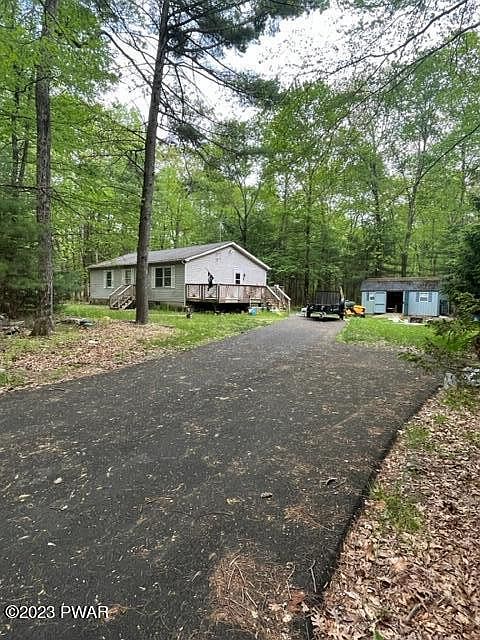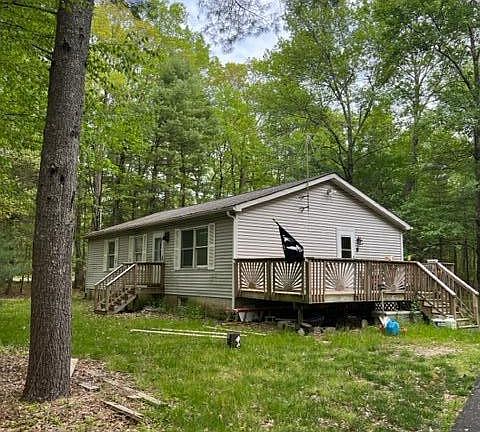 Check out this lovely three bedroom ranch in Pocono Woodland Lakes on over an acre and a half of land! Amenities include a clubhouse, outdoor pool, lake (fishing), pond, picnic area, outdoor tennis court, outdoor basketball court, and playground., Beds Description: 2+Bed1st, Baths: 1 Bath Level 1, Eating Area: Dining Area
